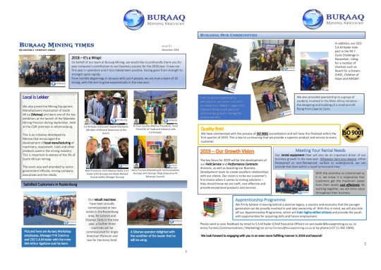 Buraaq Mining Times – First Edition December 2018 NewsMarketing 22 Jan 2019 The 1st Edition of our newsletter, Buraaq Mining Times. 945 ViewTweet