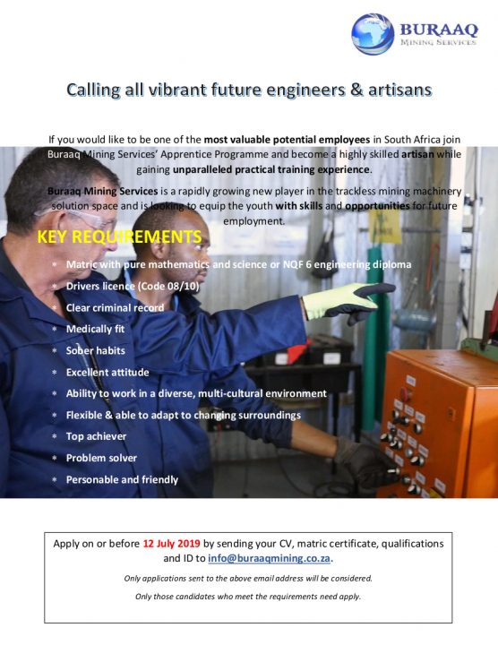Buraaq Mining is extending our Apprenticeship Programme. We encourage all motivated individuals to apply.